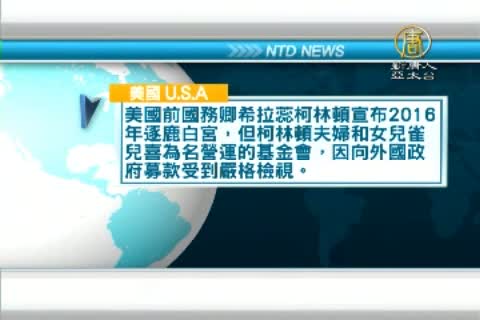 美國前國務卿希拉蕊柯林頓宣布2016年逐鹿白宮,但柯林頓夫婦和女兒雀兒喜為名營運的基金會,因向外國政府募款受到嚴格檢視。