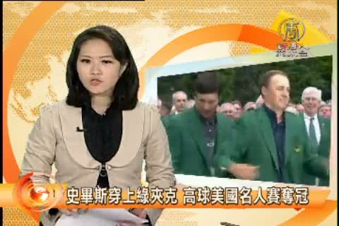 【新唐人亞太台 2015 年 04 月 13 日訊】現年21歲的美國年輕好手史畢斯 在台灣時間今天上午,以4回合總計270桿,4桿之差,贏得2015年美國名人賽冠軍。史畢斯是自1976年佛洛伊德之後,39年來,首位在名人賽一路領先到底,奪下冠軍的好手。 賽後,由去年封王的B.華生為他套上冠軍綠夾克。