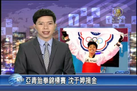 【新唐人亞太台 2015 年 04 月 13 日訊】體壇捷報來看到,在台北市立大學體育館進行的亞洲青少年跆拳道錦標賽,再傳好消息,台灣女子68公斤級的沈于婷,在延長賽中擊敗烏茲別克選手妮哥拉,搶下金牌。總計本屆亞青少跆拳道錦標賽,台灣共拿下2金、2銀、7銅,共計11面獎牌。