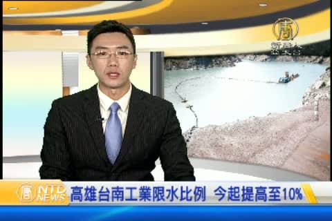 【新唐人亞太台 2015 年 04 月 15 日訊】石門水庫從上周三開始實施「供水5天,停水2天」的第三階段限水措施,已經屆滿1周,水利署表示,今天將盤點三階限水第一輪的實施成效如何。至於南部高雄台南的水情,因為仍然告急,今天開始將實施第二階段限水的「升級版」,也就是工業大戶減供比率由現行的7.5%,提高至10%。