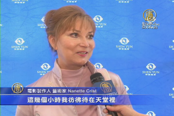 電影製作人Nanette Crist:“這是我第四次觀看神韻,演出太神奇了。這幾個小時我彷彿待在天堂裡。演出有精神和人文多層面的含義。美國人應該了解中國正在發生的事情。如何保留悲壯的中國文化,以及法輪大法的傳統精神。”