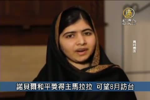 諾貝爾和平獎得主馬拉拉 可望8月訪台
