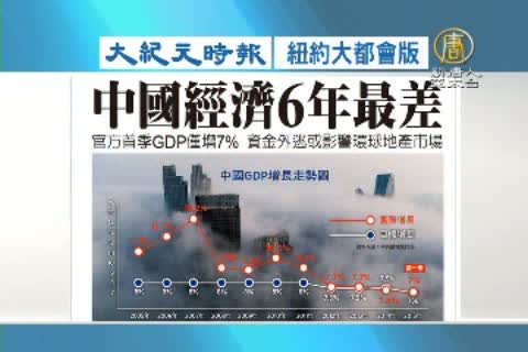 接著看到大紀元時報紐約大都會版報導:中國經濟6年最差 官方首季GDP僅增7% 資金外逃或影響環球地產市場