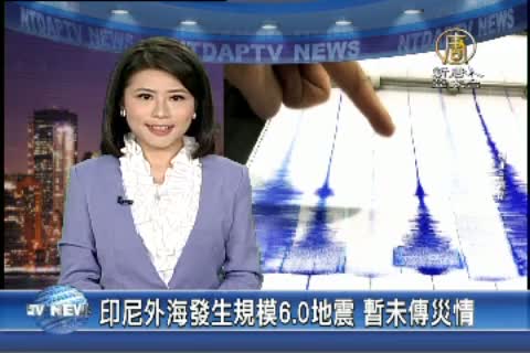 【新唐人亞太台 2015 年 04 月 20 日訊】就在台灣今天上午發生芮氏規模6.3的地震,印尼傍晚也發生規模6.0的強震。美國地質調查局表示,印尼當地時間今天下午4點5分,在西部蘇門答臘外海發生芮氏規模6.0地震。目前當局並未發布海嘯警報,也沒有傳出傷亡。