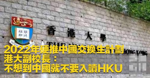 香港大學副校長何立仁今日與學生會代表會面,會上他就上周五不恰當的言論向學生道歉,並收回有關言論,澄清現時大學沒有強制政策,要求所有學生在2022年起必須去海外或內地交流。但校長馬斐森在接受《南華早報》訪問時則表示,學生要有合理原因才可獲豁免北上。2人明顯持不同說法。