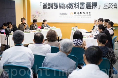 台灣教授協會21日舉辦「微調課綱與教科書選擇」座談會,邀請五都教育局代表與會,並對於2015高中教科書選擇建議。(陳柏州/大紀元)