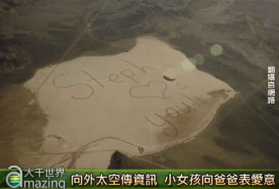 女兒 史蒂芬妮:「我想如果我可以寫足夠大的字,那他就能在太空看到了,他可能會用相機把它拍下來,因為他是攝影迷。」[Hyundai : A Message to Space ]