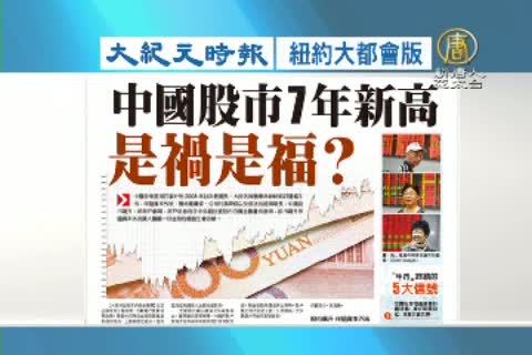 接著看到大紀元時報紐約大都會版報導:中國股市7年新高 是禍是福?
