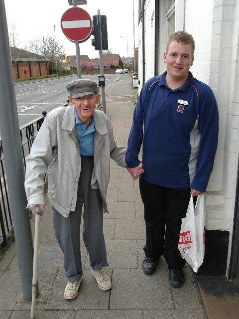 【新唐人亞太台 2015 年 04 月 27 日訊】(大紀元記者張秉開編譯報導)英國一家阿爾迪超市一名18歲年輕兼職打工仔因為經常幫助一位95歲老人購物回家,被人拍照上傳臉書后,獲得25萬個「讚」,這名年輕人也成了網絡紅人。