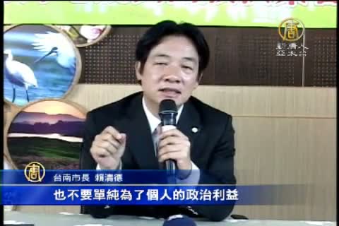 台南市長 賴清德:「朱立倫行前,我們倒是可以期勉朱立倫,第一個就是,不要違反直轄市登陸中國的規定,第二個這次前往,也不要單純為了個人的政治利益,第三個,更不要是為了要取代連戰家族在中國的利益,第四個,也不要繼續延續中國國民黨失敗的兩岸政策,同時我們也希望整個行程下來,沒有傷害台灣的整體利益。」