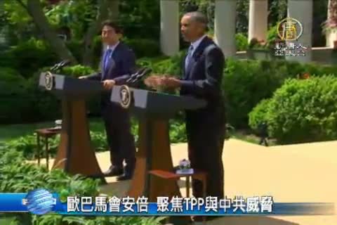 【新唐人亞太台 2015 年 04 月 29 日訊】美國總統歐巴馬週二在白宮以高規格儀式,接待來訪的日本首相安倍晉三。歐巴馬用「堅不可摧」來形容目前的美日關係,雙方會晤後表示,將在貿易和國防領域,強化美日多年的同盟關係。在兩人會見後發表的聯合聲明,明確提及,「以力量片面地改變現狀,損及主權或領土完整性的行動,都是對國際秩序的挑戰」外界解讀,是針對中共近期南海擴張主權的再一次表態。