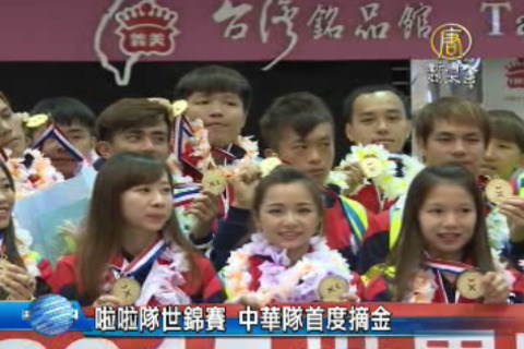 【新唐人亞太台 2015 年 04 月 30 日訊】剛剛在2015年世界啦啦隊錦標賽中,首度奪下競技啦啦隊混合團體組冠軍的中華台北隊。29日深夜搭機返台,受到隊友、家屬們的熱烈歡迎,共同分享奪冠喜悅。