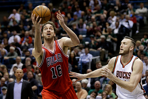 公牛隊加索持球上籃,加索貢獻19分8籃板。(Photo by Mike McGinnis/Getty Images)