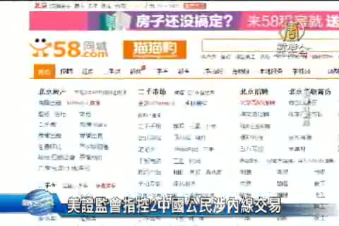 【新唐人亞太台 2015 年 05 月 01 日訊】美國證監會,日前指控2名中國公民涉嫌內線交易,要求法院凍結非法所得。證監會指控,居住於北京的夏曉瑜、胡延廷,透過美國帳號,利用2家中國電子商務公司,「58同城」和趕集網 合併的消息,投資期貨選擇權,非法獲利超過200萬美元。美國證監會要求紐約法院凍結兩人的非法所得,並將於下週舉行聽證會。