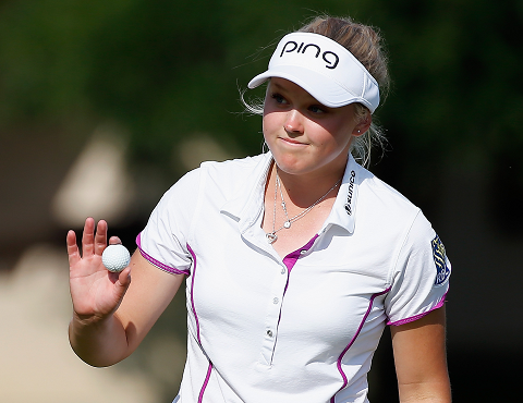 【新唐人亞太台 2015 年 05 月 02 日訊】北德州高球賽第二輪,加拿大選手韓德森以總桿數134桿暫居領先,朴仁妃以1桿之差排第2。台灣選手方面,徐薇凌以138桿並列第12,曾雅妮139桿並列第21,龔怡萍140桿並列第25。而球后高寶璟則是總桿數高於標準桿1桿,勉強晉級。