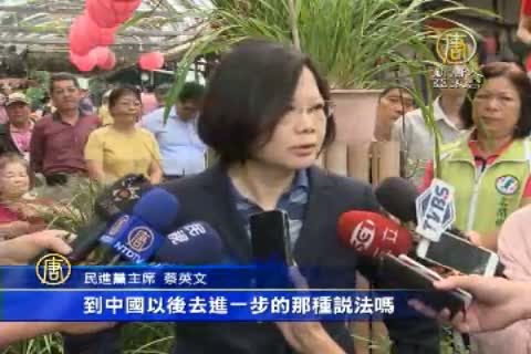 民進黨主席 蔡英文:「如果不維持現狀,他(馬總統)想把台灣帶到哪裡去呢?難道說就是朱立倫主席到中國以後去進一步的那種說法嗎?那這個我想國民黨要給台灣人一個解釋嘛、一個說法嘛,那如果他對台灣的前途那樣悲觀的話,那請總統好好的、仔細的說嘛,他的悲觀的理由在哪裡?」