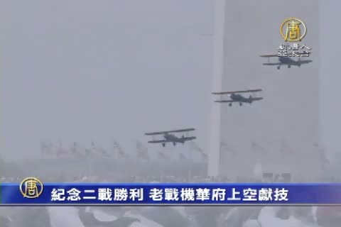 【新唐人亞太台 2015 年 05 月 09 日訊】為了紀念第二次世界大戰勝利70週年,星期五,數十架保存良好的老式戰機飛越美國華府上空,再展當年雄姿。當天,美國總統歐巴馬也發表演講,督促美國民眾勿忘老兵們奮鬥而來的自由。