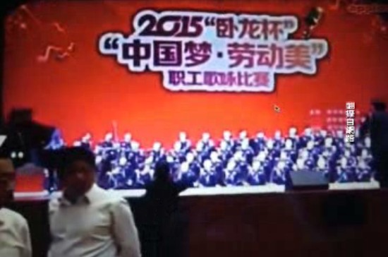 2015-05-12 10:55:01貴州省畢節市大劇院舉辦「中國夢,勞動美」歌唱比賽,台上80位公安彩排練唱時,瞬間下墜跌落深五公尺高的台底,官方稱有8人受傷,其中兩人重傷。影像被po上網後,網友調侃,認為這是中共倒台的先兆。