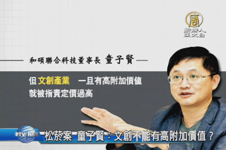 【新唐人亞太台 2015 年 05 月 11 日訊】台北市長柯文哲曾預告,松菸文創的紛爭,最快兩星期內就可落幕。而居中協調的功臣,正是和碩董事長童子賢,童子賢向平面媒體表示,為何在凡事追求高附加價值的今天,文創產業,有了高附加價值,卻被指責定價過高,認為這是台灣社會的矛盾。
