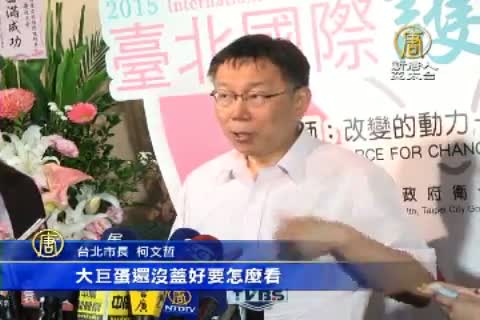 台北市長 柯文哲:「(請問他們有去看大巨蛋嗎?)大巨蛋還沒蓋好要怎麼看。」「到現在為止還可以啦,他們只是比較擔心說,那個場館一定要他希望在比賽前3個月要完工,這個我們會注意。」