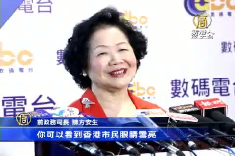 【新唐人亞太台 2015 年 05 月 14 日訊】香港政府高官最近兩週頻繁宣傳政改方案,但根據三家大學的民調顯示,市民對政改的支持率大跌,前政務司司長陳方安生指出官方宣傳適得其反,官員不應該參與簽名行動。