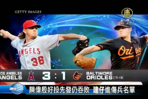 【新唐人亞太台 2015 年 05 月 16 日訊】來看到體育消息。金鶯隊台灣旅美好手陳偉殷,今天先發迎戰天使隊,殷仔完投7局,三振7名打者,失2分,雖無緣勝投,但表現可圈可點。另外,尋求重返大聯盟的王建民,今天被亞特蘭大勇士3A放進7天傷兵名單,將跳過下一次先發。王建民重返大聯盟之路,可以說是,備受考驗。