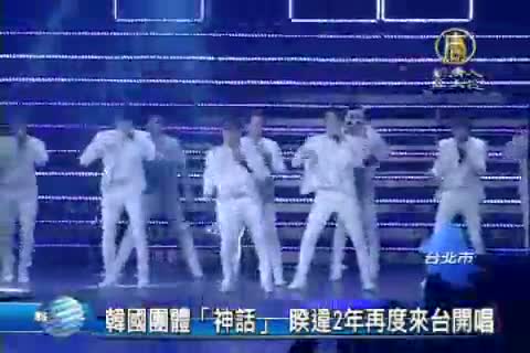 【新唐人亞太台 2015 年 05 月 17 日訊】堪稱韓國最長壽團體「神話」,5月16日晚間在南港展覽館舉辦演唱會,這是睽違2年後,他們再度登台開唱,一開場就用精湛舞技和歌聲征服現場近5千名粉絲,還不免俗用國語,和大家熱情互動。