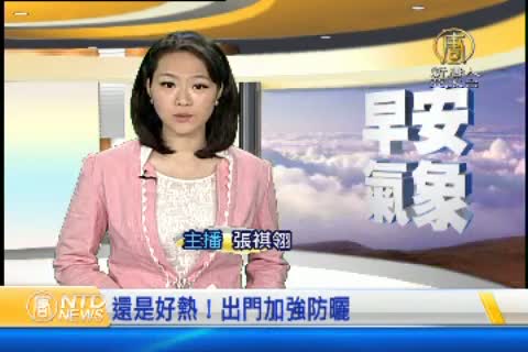 【新唐人亞太台 2015 年 05 月 18 日訊】歡迎您收看5月18日的早安新唐人,我是張祺翎。先來帶您關心今天的天氣情況。今天受太平洋高壓影響,各地的天氣大致和前兩天一樣,都是多雲到晴的穩定天氣,山區午後有局部短暫雨,但範圍及雨量都有限。白天各地高溫可達31到33℃,部分地區可能超過34℃以上,另外,提醒您,紫外線指數達到「過量」或「危險」等級,外出要注意防曬並多補充水分。帶您一起來看到國際媒體重要訊息。