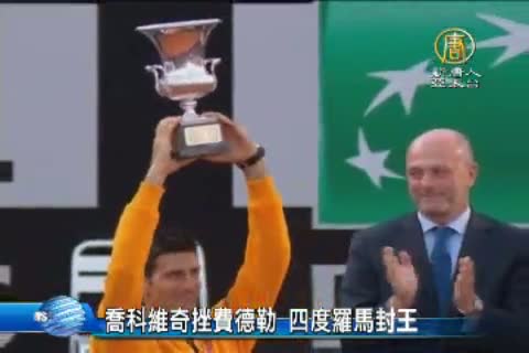【新唐人亞太台 2015 年 05 月 18 日訊】國際體壇消息,現任世界男網第一的喬科維奇17日,以6-4、6-3的比數,擊敗前任冠軍費德勒,奪下義大利公開賽男單冠軍,這也是兩人第39次大戰;而在女單方面,俄國人氣美女莎拉波娃後勁十足,第3度在此風光封后;也為下禮拜的法網賽事,帶來好兆頭。