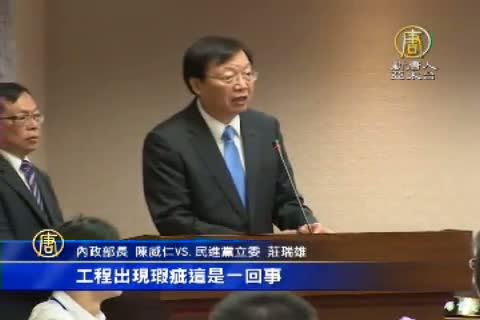 內政部長 陳威仁 VS. 民進黨立委 莊瑞雄:「一直擦屁股到現在,善後到現在,目前的進度你滿不滿意?第一個我對於發生這樣品質不良的情況,當然非常的遺憾,也對我們的住戶感到非常的抱歉,但是,說實在,我們不滿意。工程出現瑕疵這是一回事,當然要確保安全無虞以後再交屋。」