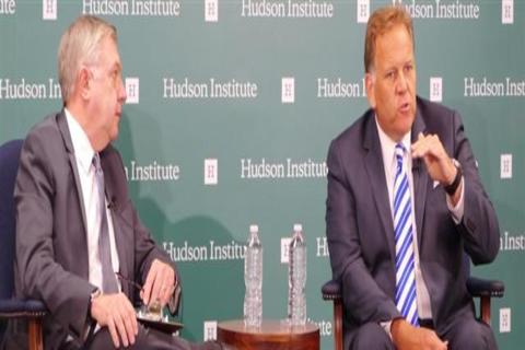 5月12日華府智庫哈德遜研究所的討論會上,前美國國會眾議院情報委員會主席麥克.羅傑斯(Mike Rogers,右)表示,美國應對中共網軍採取最有效的經濟制裁,制止中共的網路犯罪行為。(圖片/哈德遜研究所官網)
