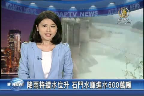 【新唐人亞太台 2015 年 05 月 20 日訊】受這波鋒面所賜,石門水庫集水區從上午七點多也開始出現降雨,水位線也從218.6公尺持續往上升,可望突破225公尺。石門水庫管理中心表示,截至下午,大約已經有600萬噸的進水。雖然距離235公尺的五年均線水位還有段距離,不過,這幾天還會降雨,所以,水位應該會穩定上升。