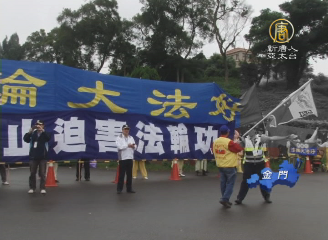 長期騷擾法輪功學員景點活動的愛國同心會,也手搖五星旗,出現在現場,之後遭警方驅離。金門民眾表示,深知法輪功被迫害多年的事實。