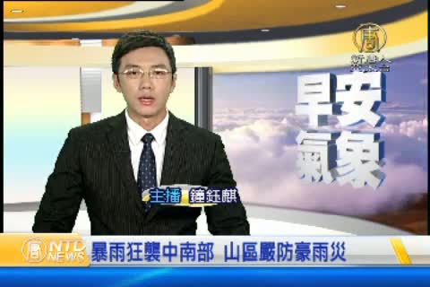 【新唐人亞太台 2015 年 05 月 25 日訊】歡迎您收看5月25日的早安新唐人,我是鐘鈺麒。先來帶您關心今天的天氣情況。中南部地區 像是嘉義大湖、奮起湖等地,昨晚在短短3小時內,累積雨量達到130到150毫米的「豪雨」等級。氣象局已將豪雨警戒上調為「超大豪雨」。預估今天降雨仍會持續,氣象局發布的超大豪雨警戒區域包括:高雄市、屏東縣。大豪雨地區包括;台中市、南投縣、雲林縣、嘉義縣市,還有台南市。請民眾要注意瞬間大雨、雷擊、強陣風,山區要慎防坍方;落石、土石流及溪水暴漲,低窪地區注意淹水。帶您一起來看到國際媒體重要訊息。