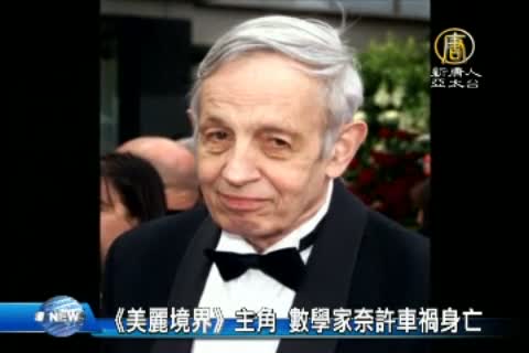 【新唐人亞太台 2015 年 05 月 25 日訊】繼續是一則令人遺憾的消息。電影《美麗境界》在真實世界的主人翁,因為賽局理論奠定了堅實的基礎,而獲得諾貝爾經濟學獎的經濟學家 約翰.奈許教授,美國時間5月23日,在美國紐澤西州因車禍與妻雙亡。現年86歲約翰.奈許與,82歲的妻子艾麗西亞,在美國新澤西州搭乘計程車,不明原因在高速公路上失控,兩人被激烈撞擊摔出車外雙雙身亡,警方懷疑兩人未繫安全帶,車禍原因還有待調查。而在電影中演出約翰.奈許的男星羅素克洛聽到這個消息,第一時間在推特上表示震驚與哀悼。