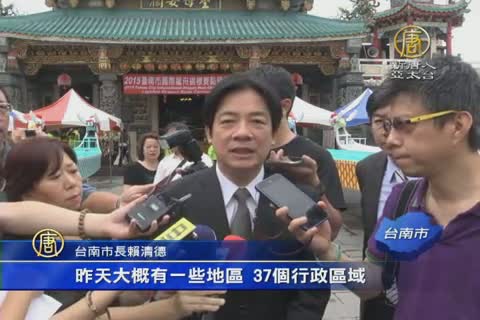 台南市長賴清德:「雖然這兩天,我們水庫進帳不少水量,為求安全起見,等我們水庫沒有明顯缺水之虞的時候,我們再來解除限水現階段,請民眾節約用水,昨天有一些地區37個行政區域,有一些24小時的雨量是有超過350公釐,有一些是兩百多,不夠。」