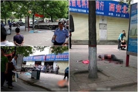 5月25日早9點左右,陝西西安市自強東路生產路公交站旁發生慘案。55歲的拆遷戶郝建宗等大明宮遺址公園附近一個拆遷辦負責人、58歲的曹鈞喜下公交車後,將曹攔住,用刀連續向其刺了幾刀後,再用斧頭在頭部猛砍幾斧。曹鈞喜倒地後,郝建宗並沒有離開現場。他說他沒有手機,讓旁邊的市民趕快報警,他就在現場等警方的到來。他住在生產路附近,多年前因為拆遷的問題,一直在尋找被刺的人,他堵這個人已經6年了。