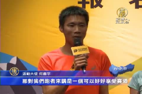 【新唐人亞太台 2015 年 05 月 28 日訊】第3屆的岱宇台中國際馬拉松邀請賽,11月22日將在台中市府廣場前開跑,主辦單位規劃了全新路線,包括藝人劉耕宏、準奧運馬拉松國手何盡平都出席響應。