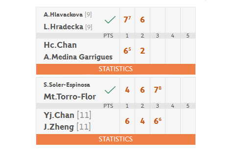 【新唐人亞太台 2015 年 06 月 01 日訊】法網女雙16強賽,詹詠然與鄭潔組合以6-4、4-6、6-7,意外敗給西班牙組合:索萊爾-艾斯皮諾薩與陶洛-佛洛。而詹皓晴與梅迪娜搭檔,也以6-7和2-6敗給大會第9種子的捷克組合:赫拉瓦科娃與哈爾德卡。