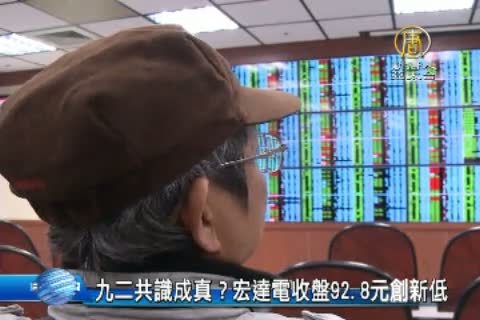 【新唐人亞太台 2015 年 06 月 03 日訊】宏達電昨天召開股東會,儘管董事長兼執行長王雪紅為營運成績不佳,親自向股東致歉,並提出未來改善營運的4大方向,但股東不買帳,今天股價再度破底,下午1點06分掉到92.6元,已經跌破2002年掛牌後的94.5元新低價,終場收在92.8元。跌幅達5.79%。而威盛更是今天苦吞跌停,收在7.07元。