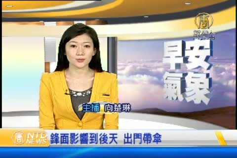 【新唐人亞太台 2015 年 06 月 05 日訊】歡迎您收看6月5日的早安新唐人,我是向楚琳。先來帶您關心今天的天氣情況。今天是小週末,不過受到鋒面影響,各地天氣不穩定,尤其西北部,今天下午,容易有陣雨或雷雨發生,在氣溫方面,各地高溫仍有31到33度,上午水氣比較少時,仍然維持悶熱的天氣。帶您一起來看到國際媒體重要訊息。