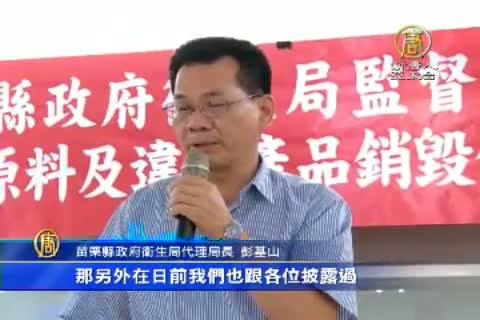 苗栗縣政府衛生局代理局長彭基山:「他的這些的原物料勢必要銷毀,誠健他以不得食用的一個原料來做成食品,來對外販售,這已經觸犯了食品衛生管理法第15條,那另外在日前我們也跟各位披露過,我們送檢的他的一個原物料裡邊,有兩種含有DDT等11種的農藥,這部分也觸犯了食品衛生管理法第15條的第1款,我們苗栗縣政府基於公權力,基於保護消費者,我們一定會來執行。」