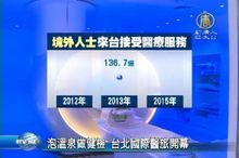 2014-12-20 21:43:17由台北市政府出資,民間醫院以及飯店共同營運的「台北國際醫旅」,(20日)正式開 幕。首創台灣醫旅一條龍服務,結合健檢、醫美、溫泉的觀光飯店,要搶攻國際觀光 醫療市場,預估第一年就能創造3.8億的營業額。