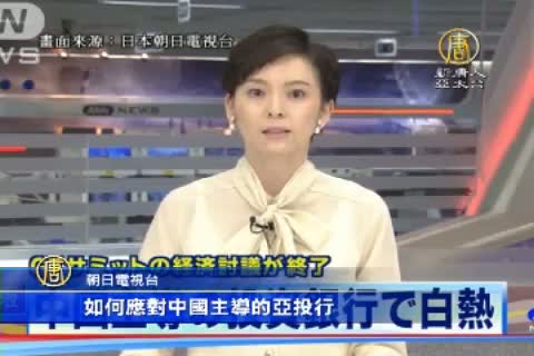 朝日電視台:「G7峰會,七大工業國首腦峰會開幕。在第一場的經濟討論中,如何應對中國主導的亞投行,引起各國領袖熱烈討論。」