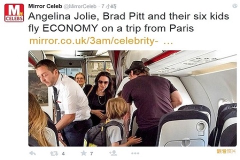 影星布萊德‧彼特一家8口擠飛機經濟艙