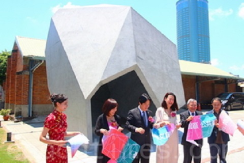 文化部政務次長邱于芸(右3)、台南市長賴清德(右4)、南臺科大校長戴謙(右2)共同為台南文化創意產業園區公共藝術揭幕。(賴友容/大紀元).jpg