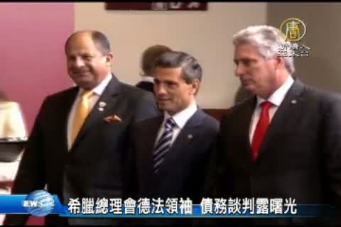 【新唐人亞太台 2015 年 06 月 11 日訊】希臘紓困方案月底到期,最後一筆72億歐元紓困貸款遲遲未放款,如果斷了銀根,希臘不僅面臨債務違約,還可能退出歐元區。希臘總理齊普拉斯,10號晚間,在歐盟總部 比利時布魯塞爾,會晤德國總理梅克爾 及 法國總統歐蘭德,德國和法國是希臘紓困計劃的兩大出資國。彭博社報導,德國政府有考慮解凍援助資金,希臘債務問題露曙光,也帶動週三美股大漲,道瓊工業指數重回1萬8千點。