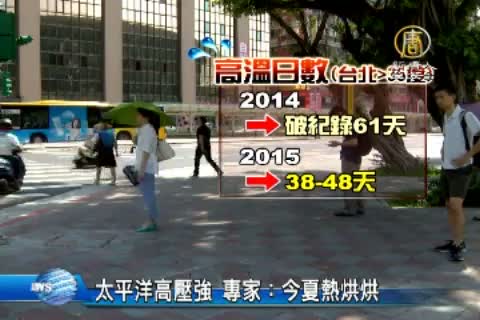 今年(2015年)更預估7到9月,3個月就有38到48天,等於整整1個半月熱到翻,加上今年(2015年)太平洋高壓結構完整,勢力強,颱風侵台機率降低,降雨也跟著減少。