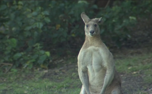 提醒觀眾,若有幸遇到大袋鼠,最好還是敬而遠之,因為牠們可是天生的拳擊高手,強健的身材,一點都不好惹。
