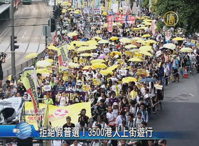 【新唐人亞太台 2015 年 06 月 14 日訊】距離香港政改表決剩下三天時間,香港民間人權陣線等十多個團體今天舉行「全民否決政改」遊行,主辦方宣布有3500人參加。請看我們香港記者來自現場的報導。